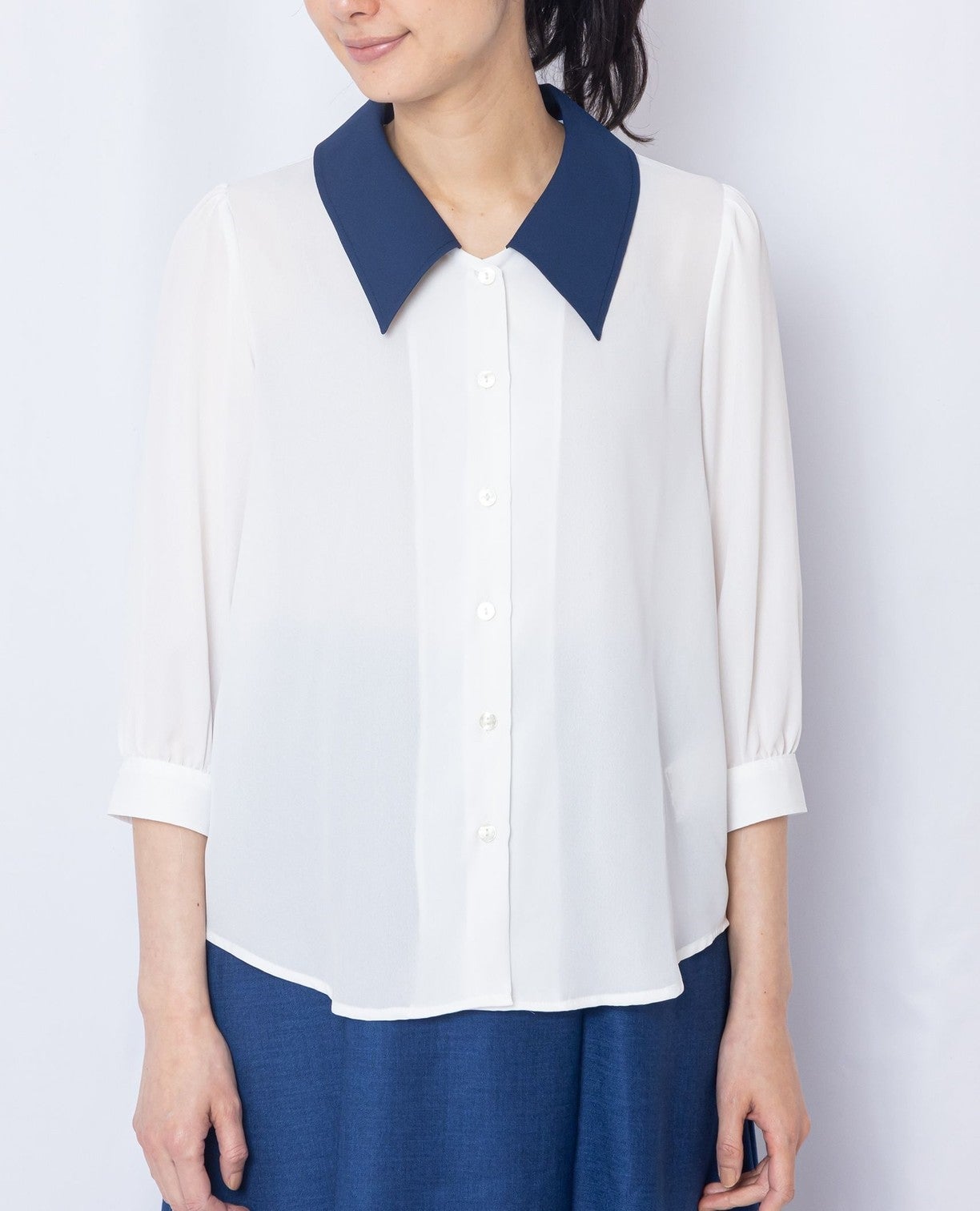 ジョーゼットカラーコンビボウタイ付きブラウス