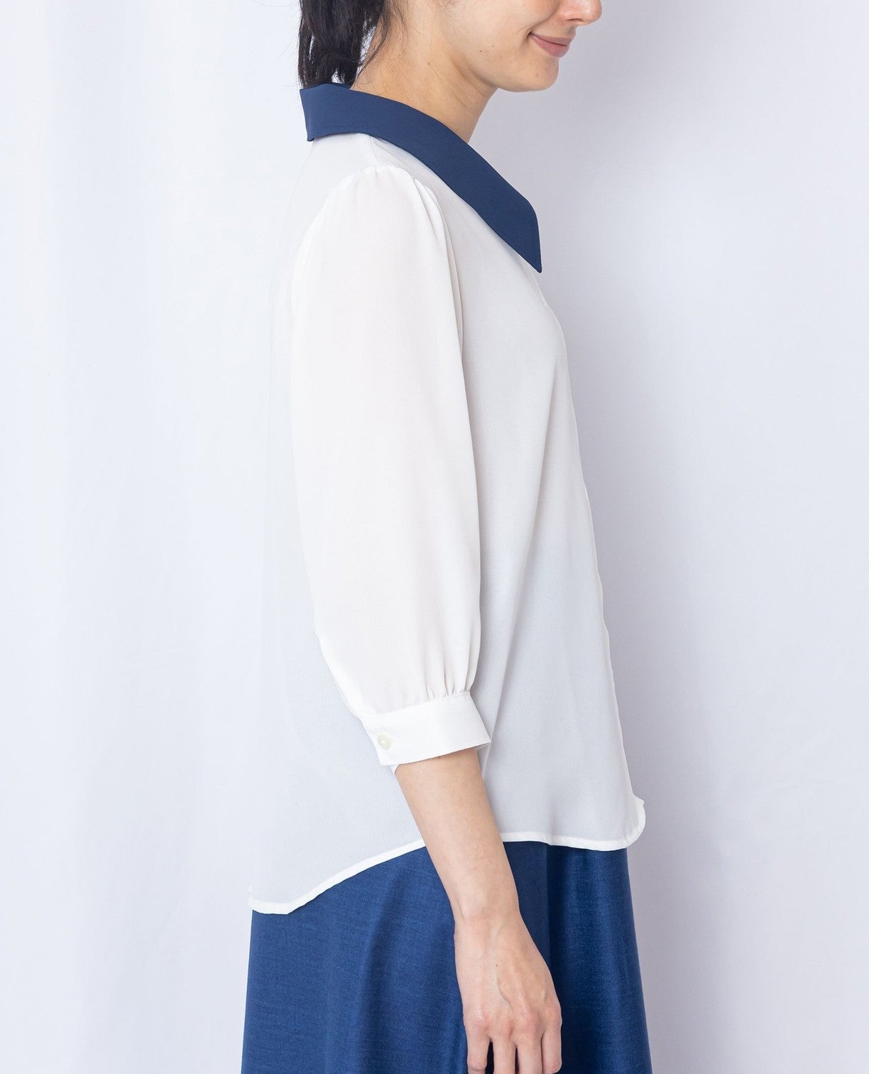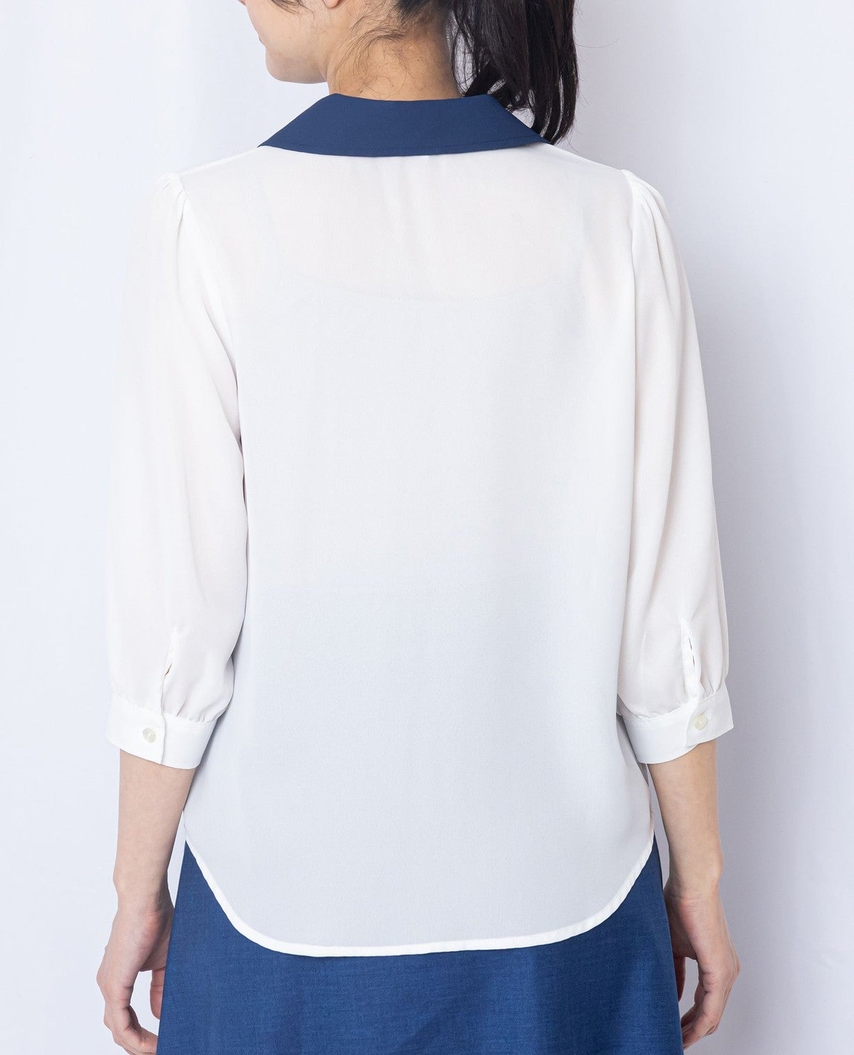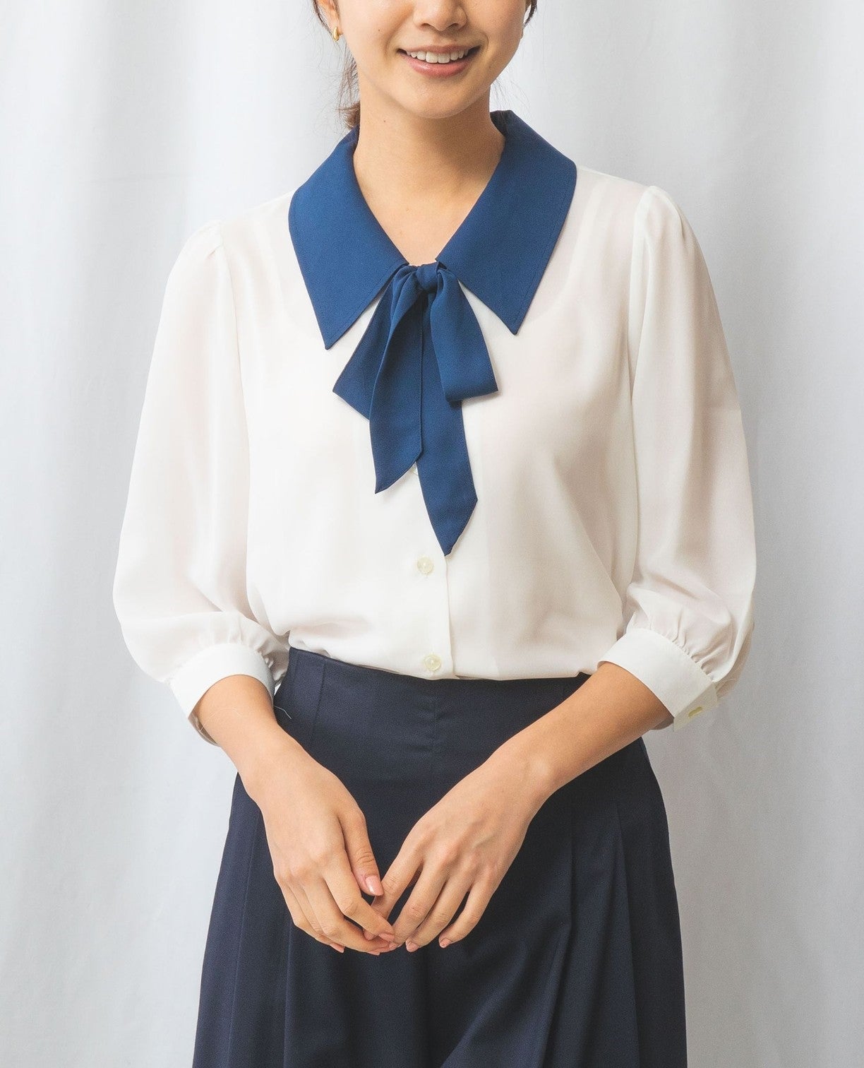 ジョーゼットカラーコンビボウタイ付きブラウス