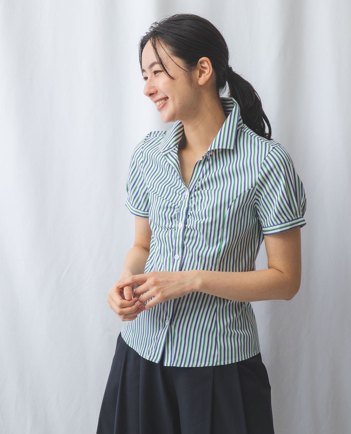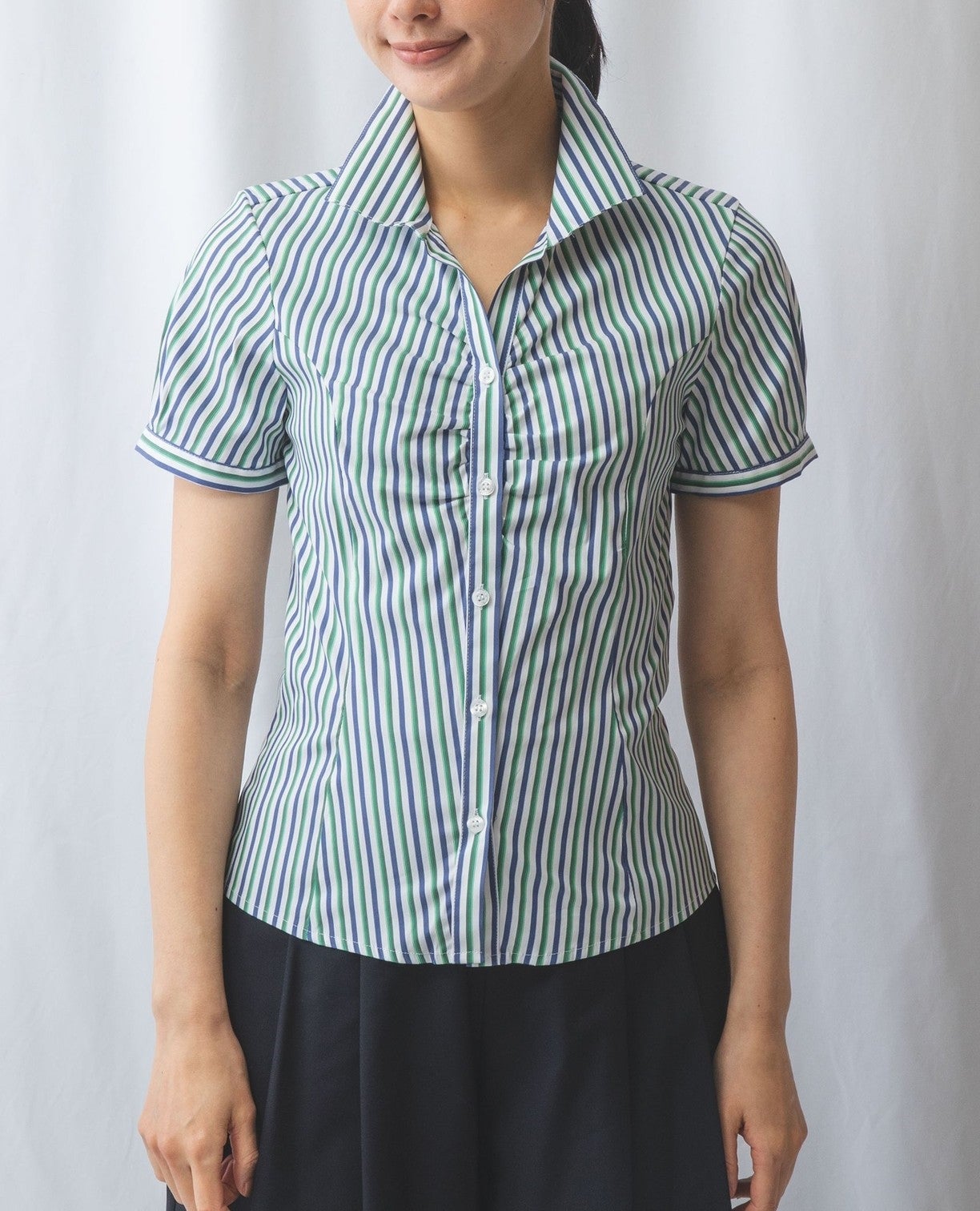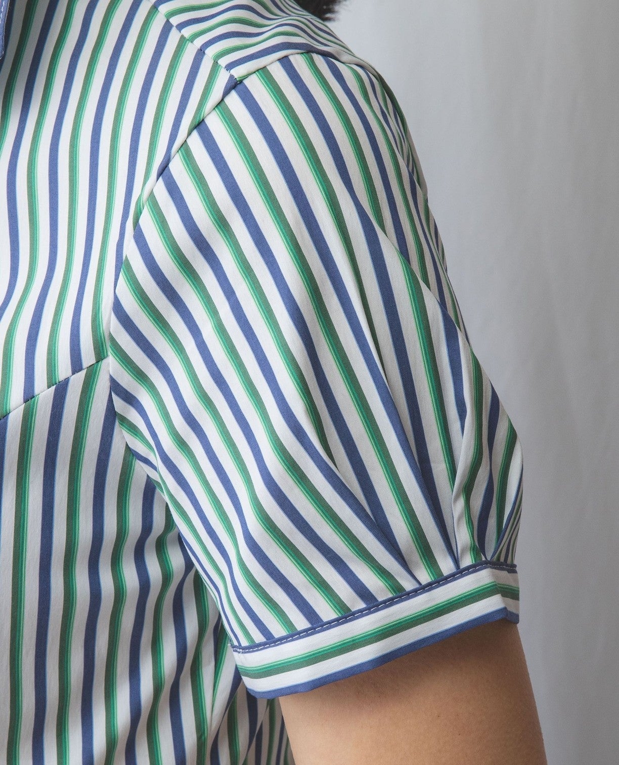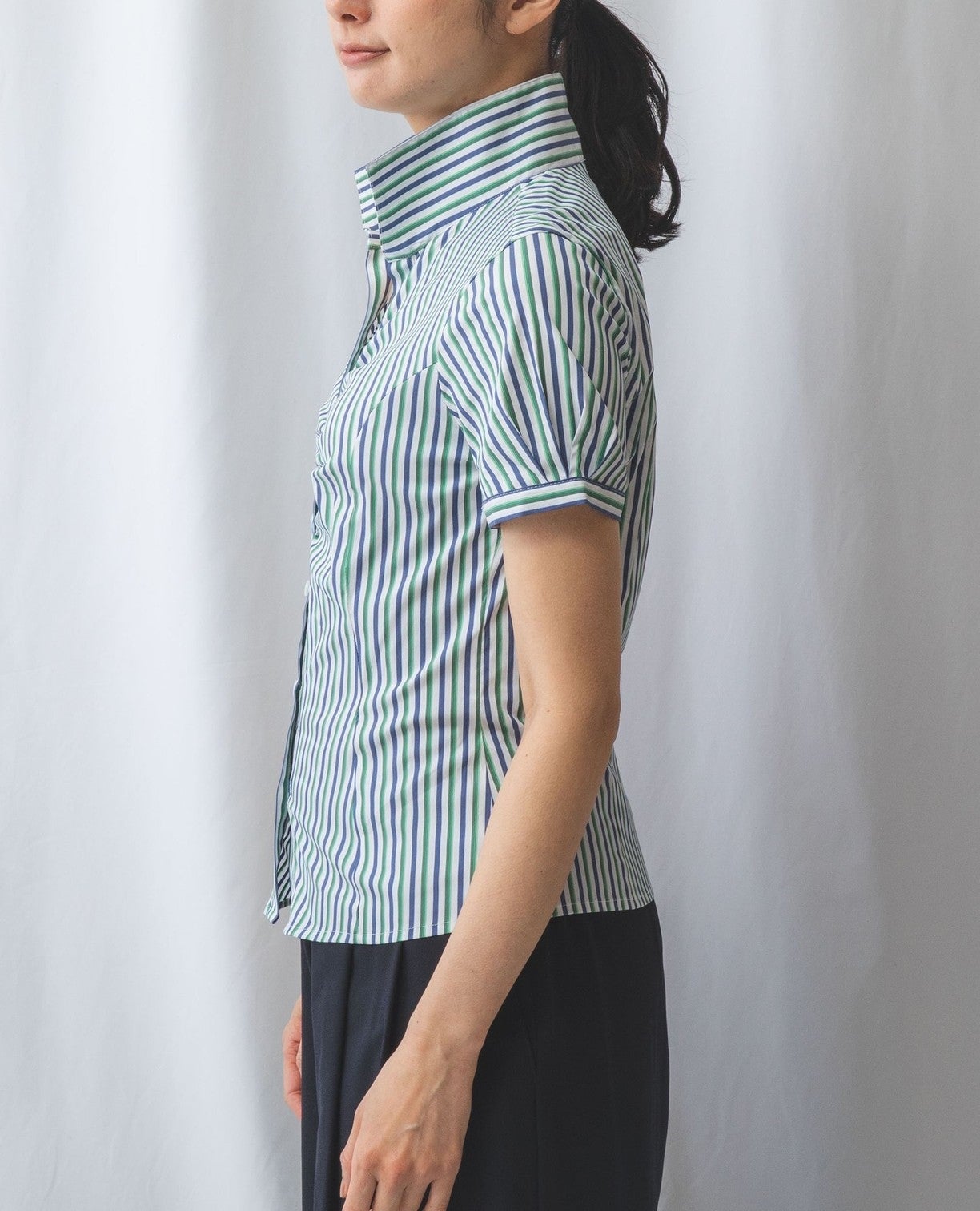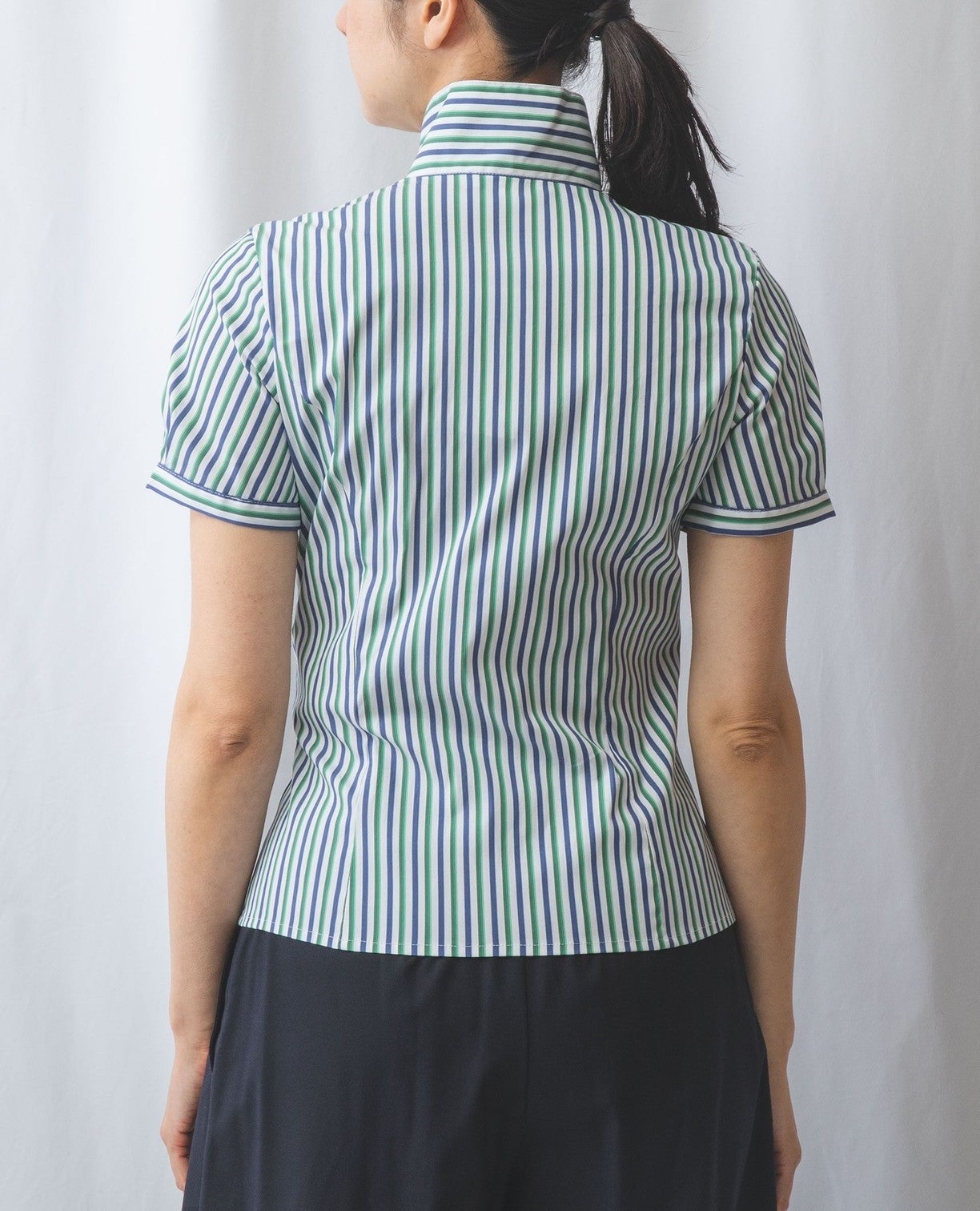 ミックスカラーストライプスタンドカラー半袖シャツ