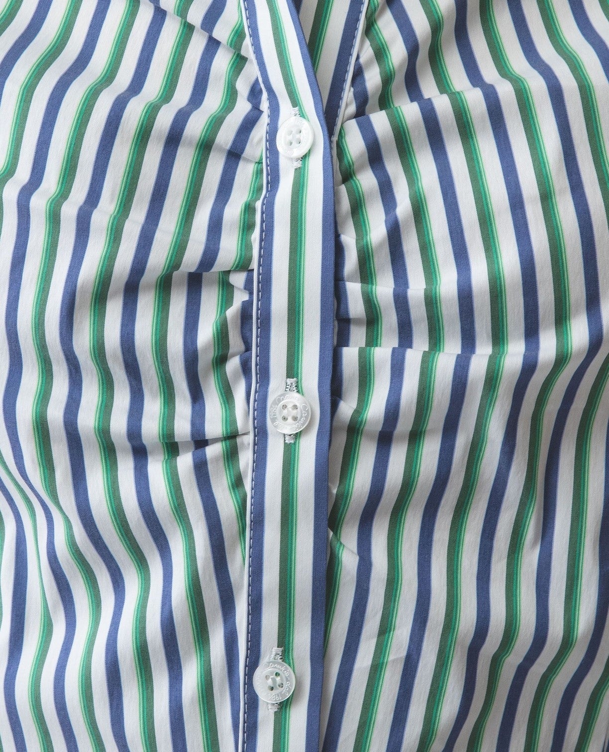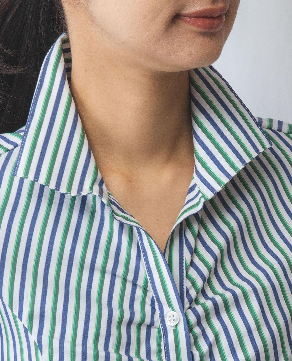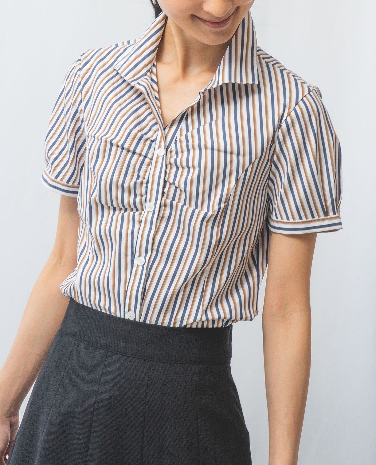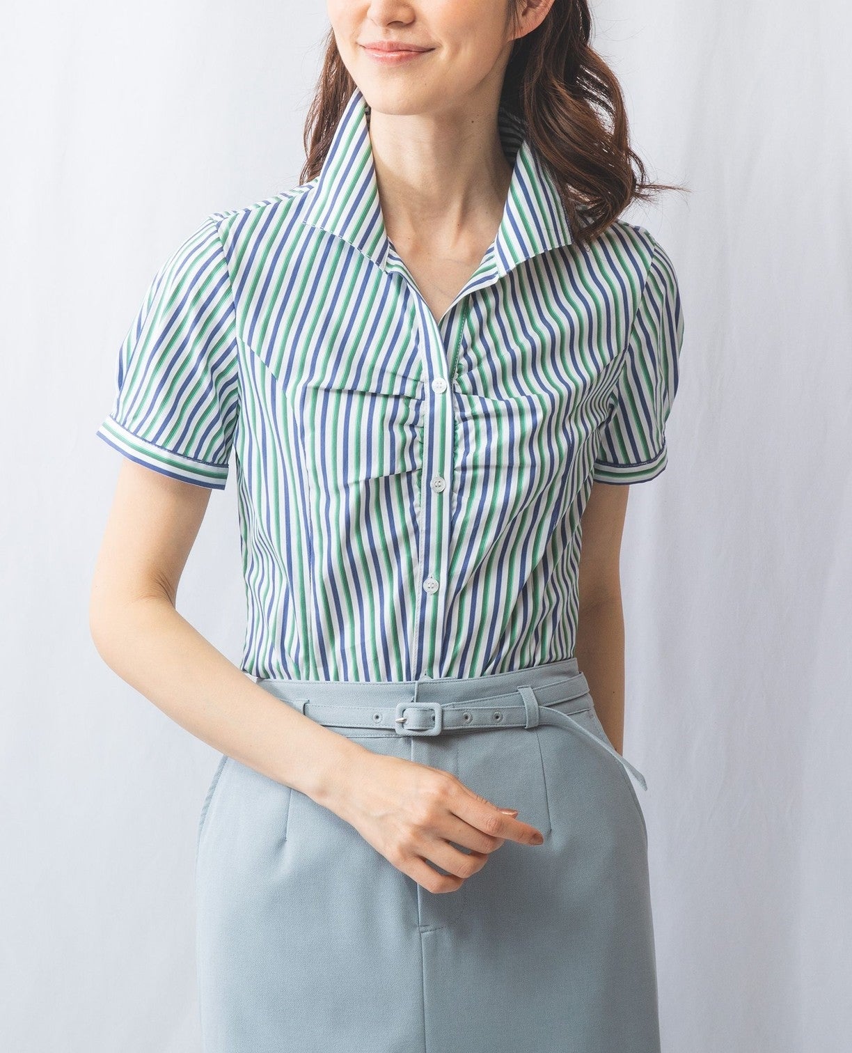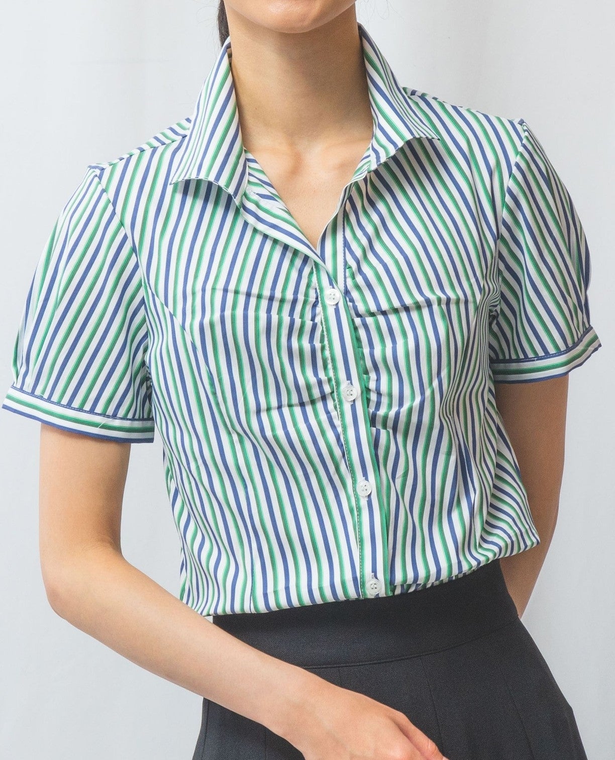 ミックスカラーストライプスタンドカラー半袖シャツ