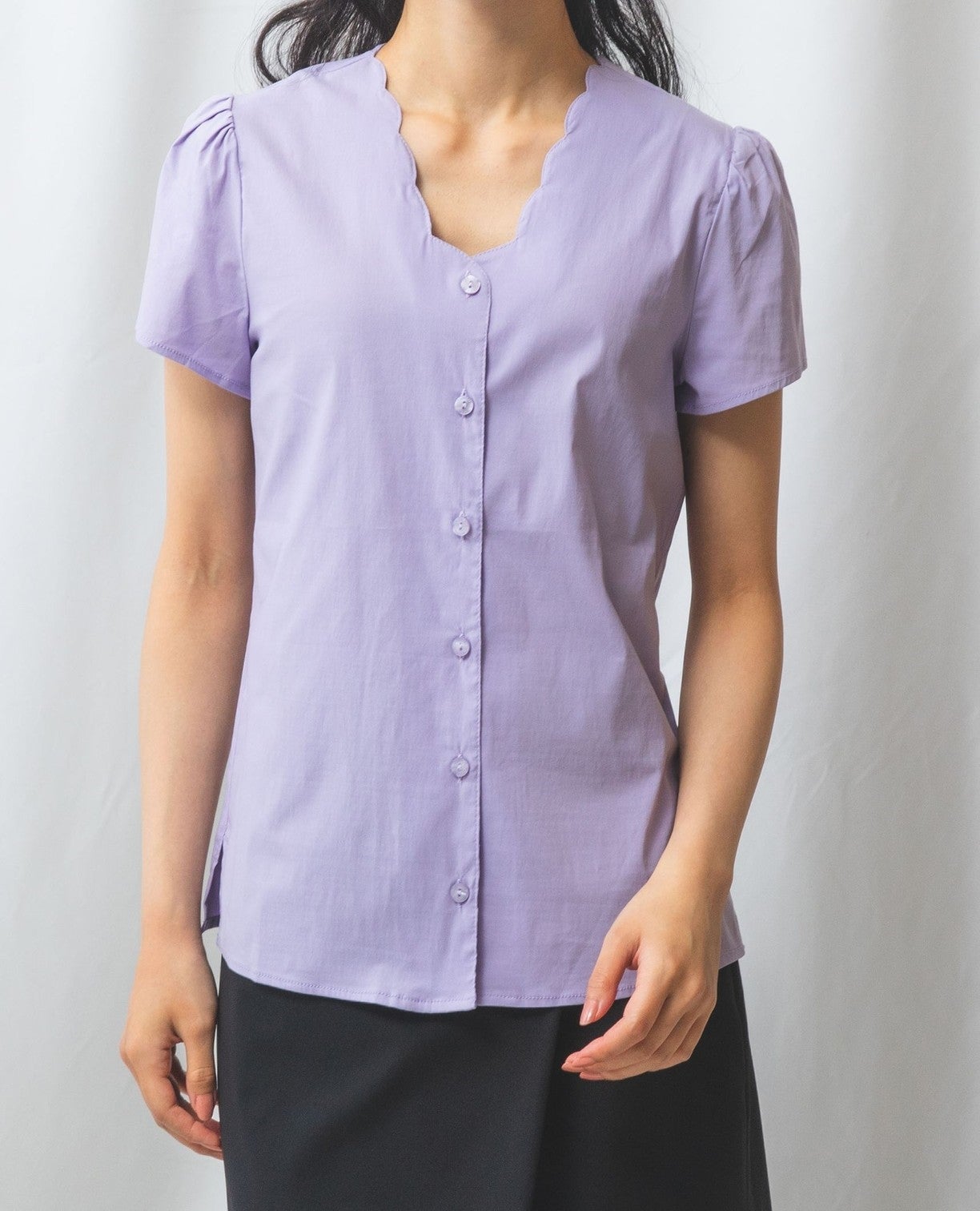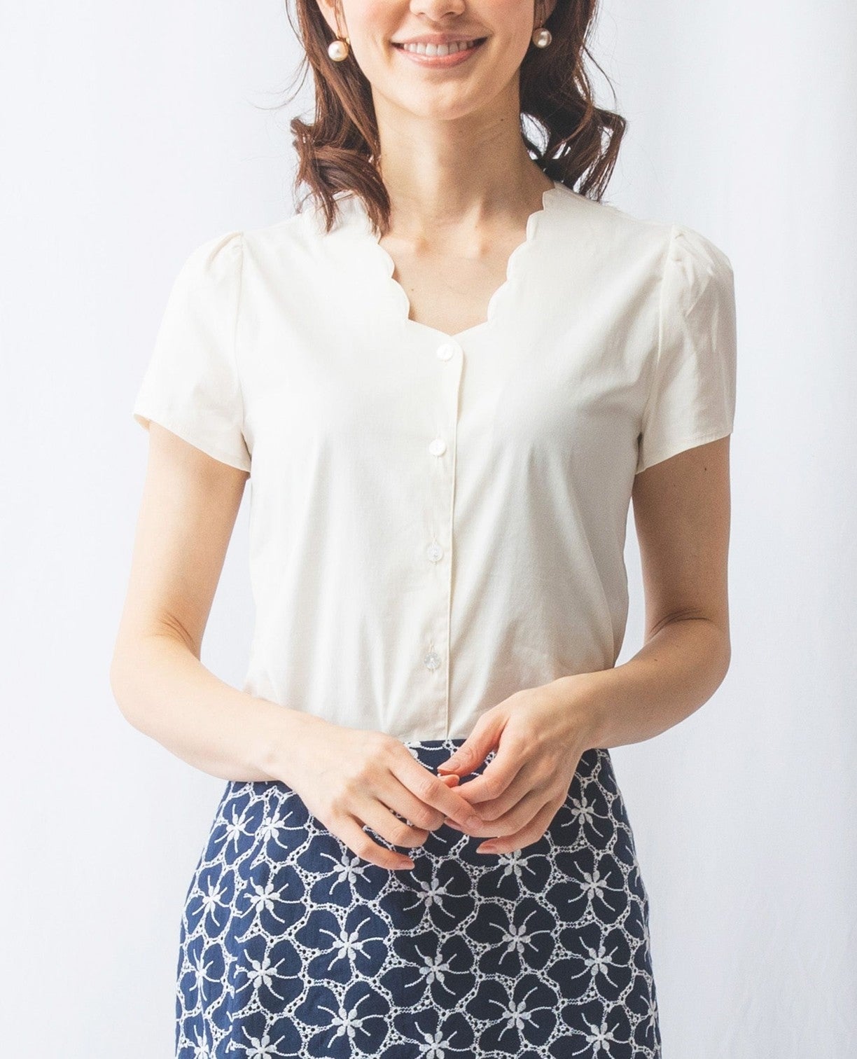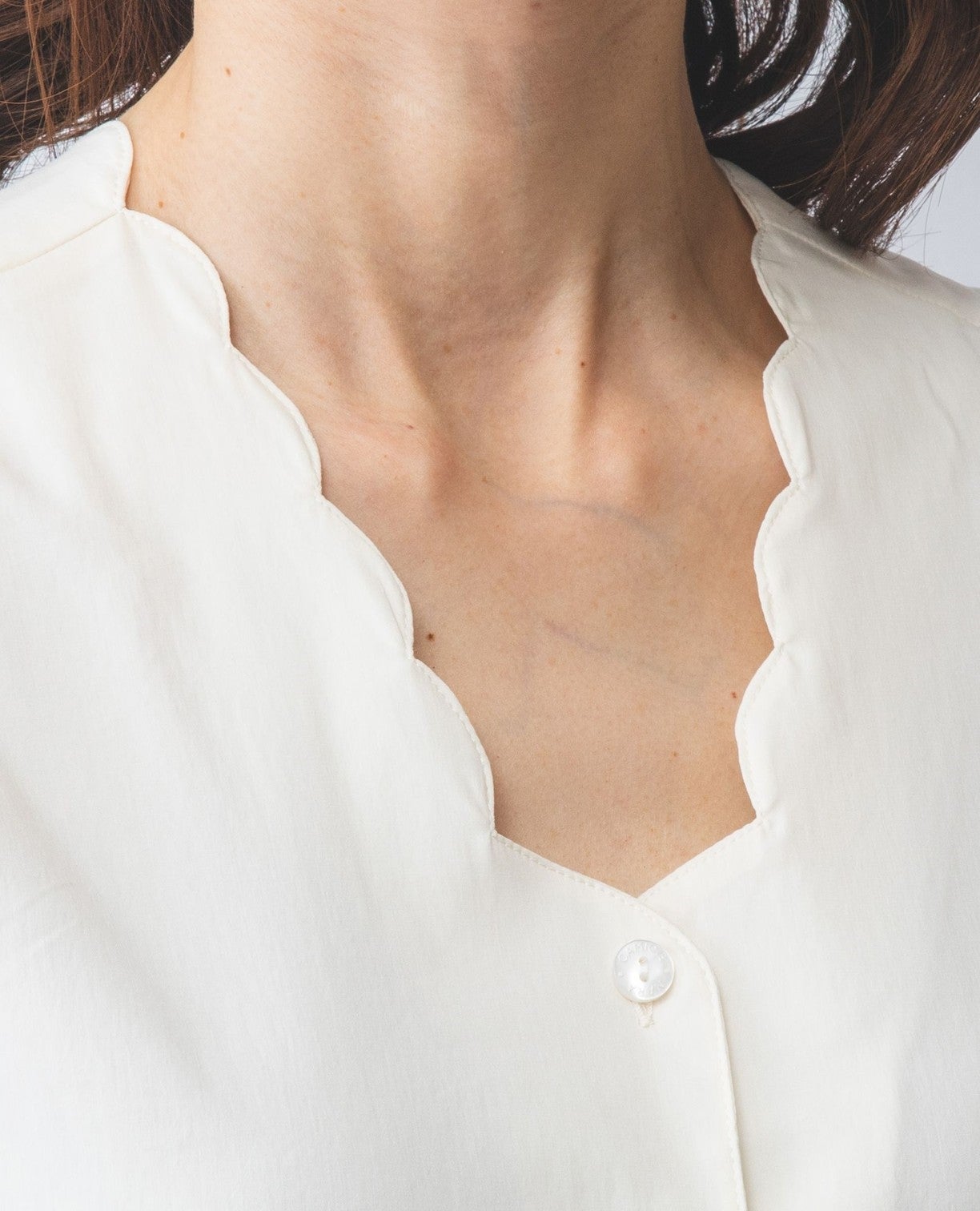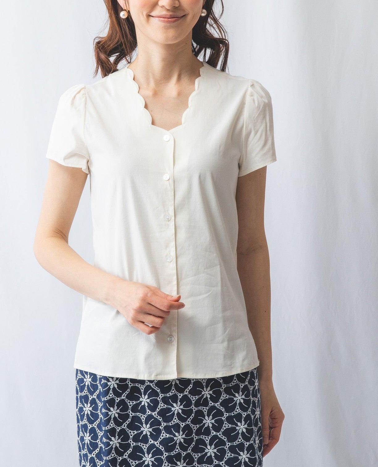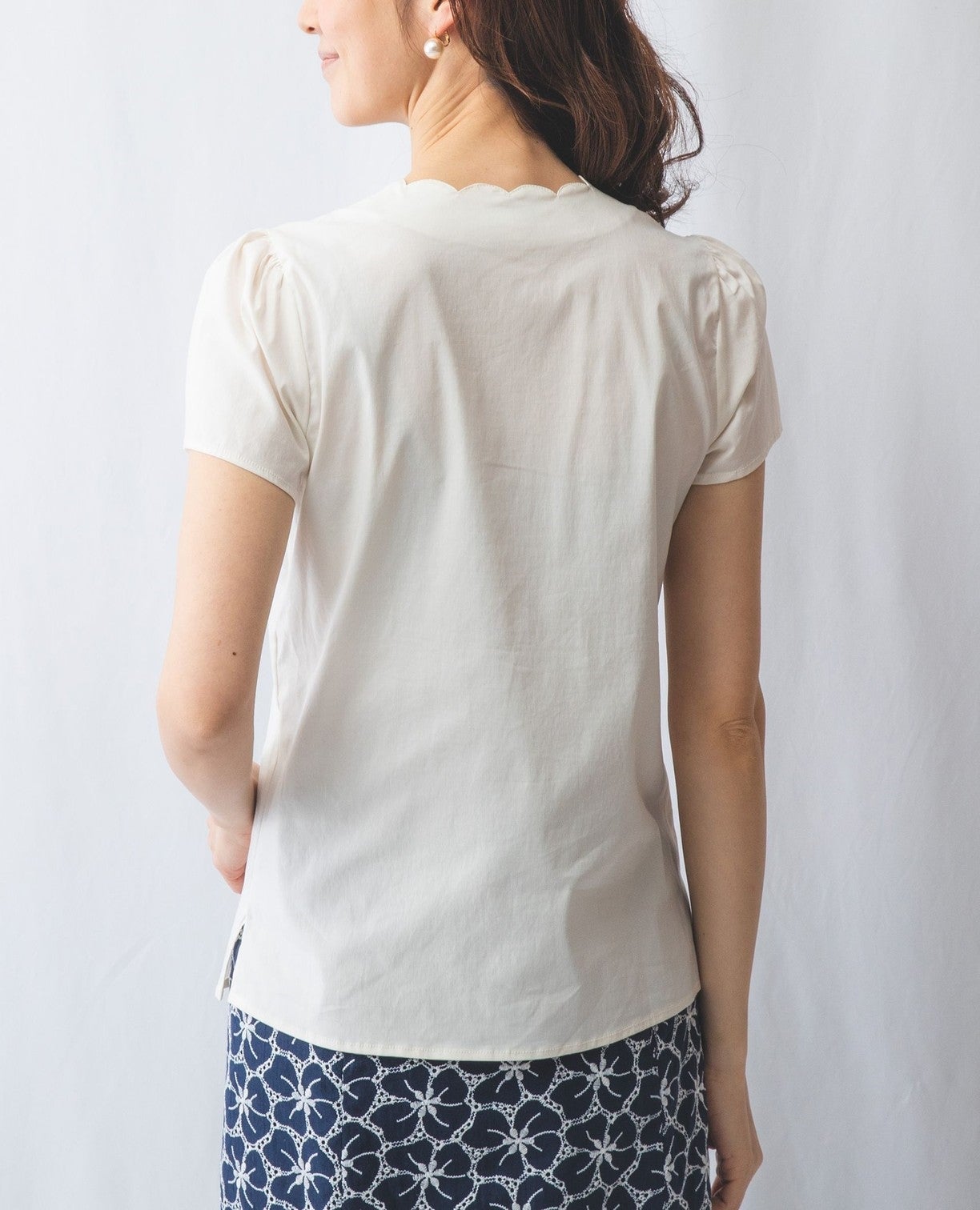 コットンストレッチスカラップネックブラウス