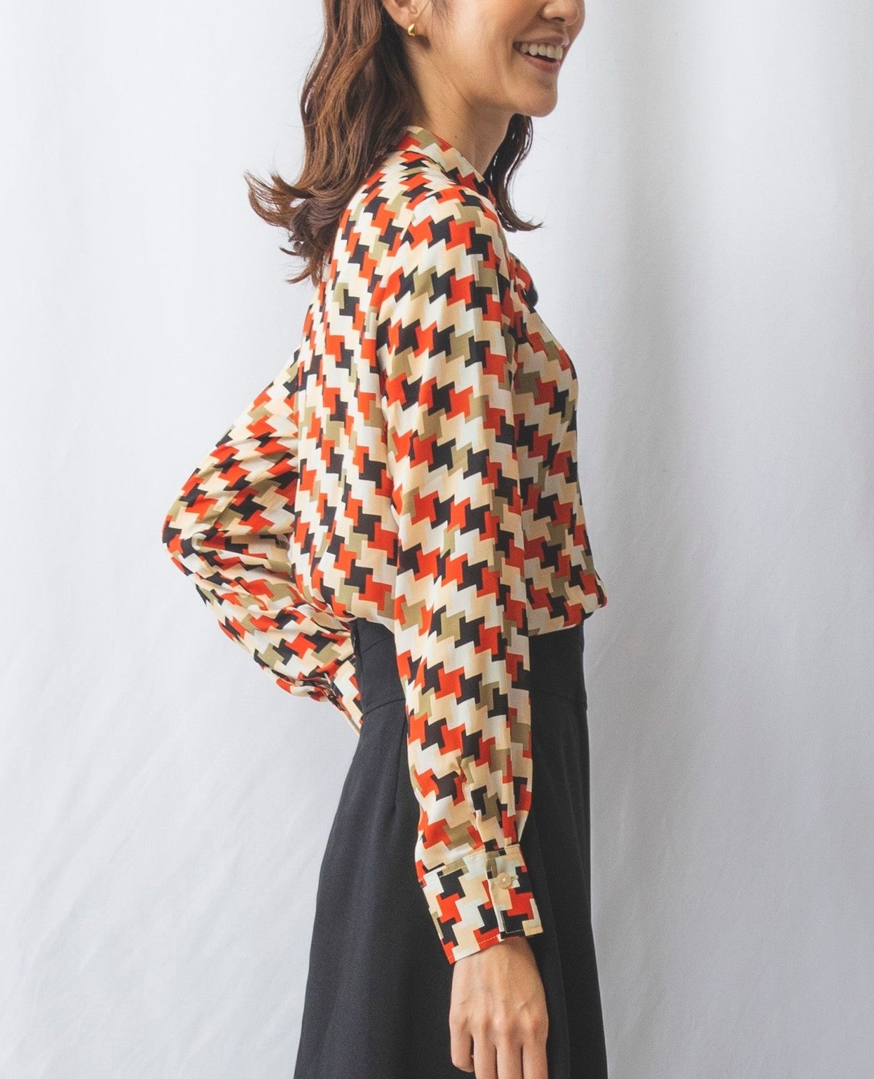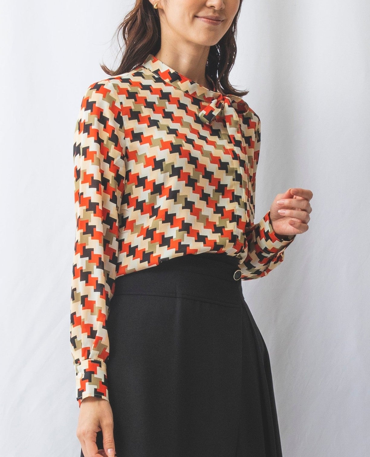 パズルプリントサイドリボンブラウス