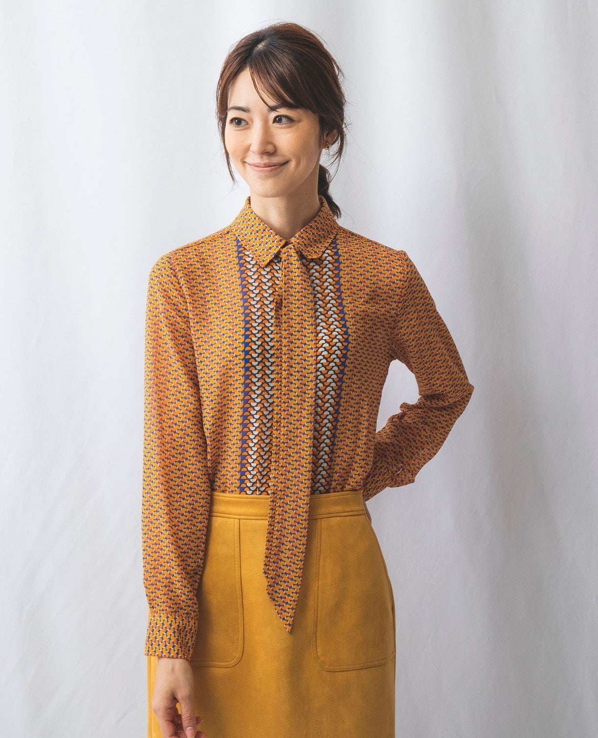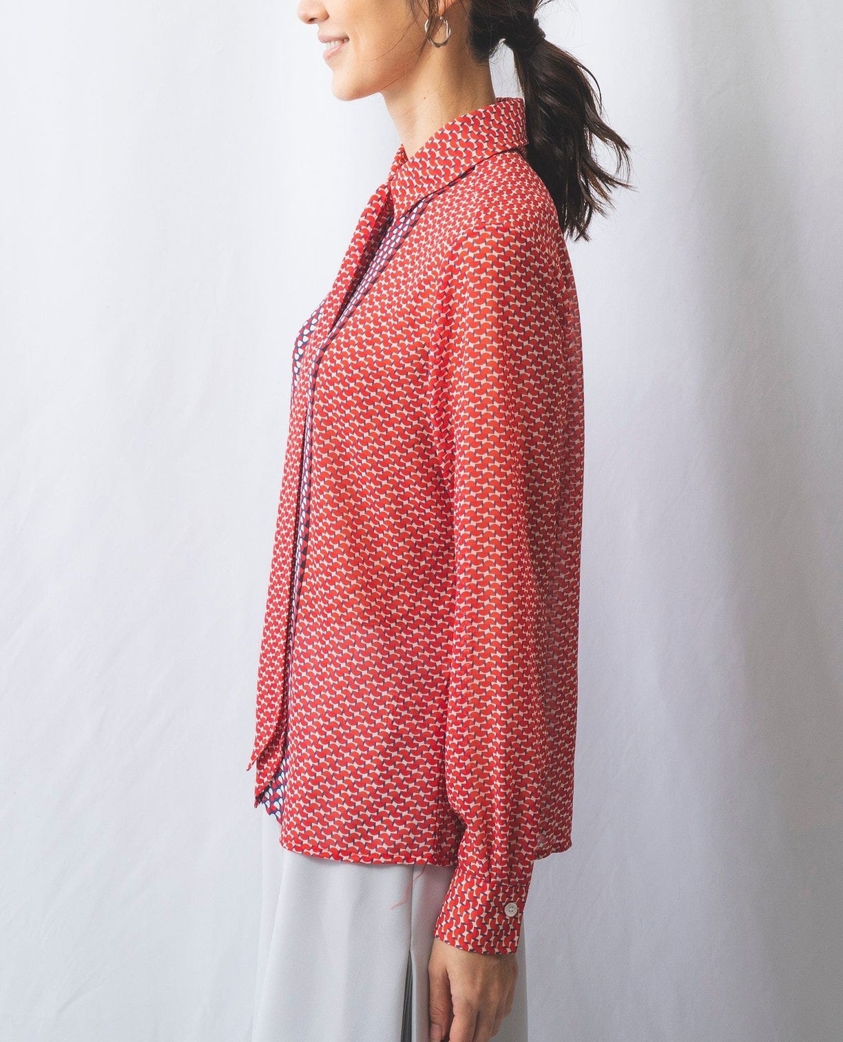 セミサークル幾何ボウタイ付きブラウス