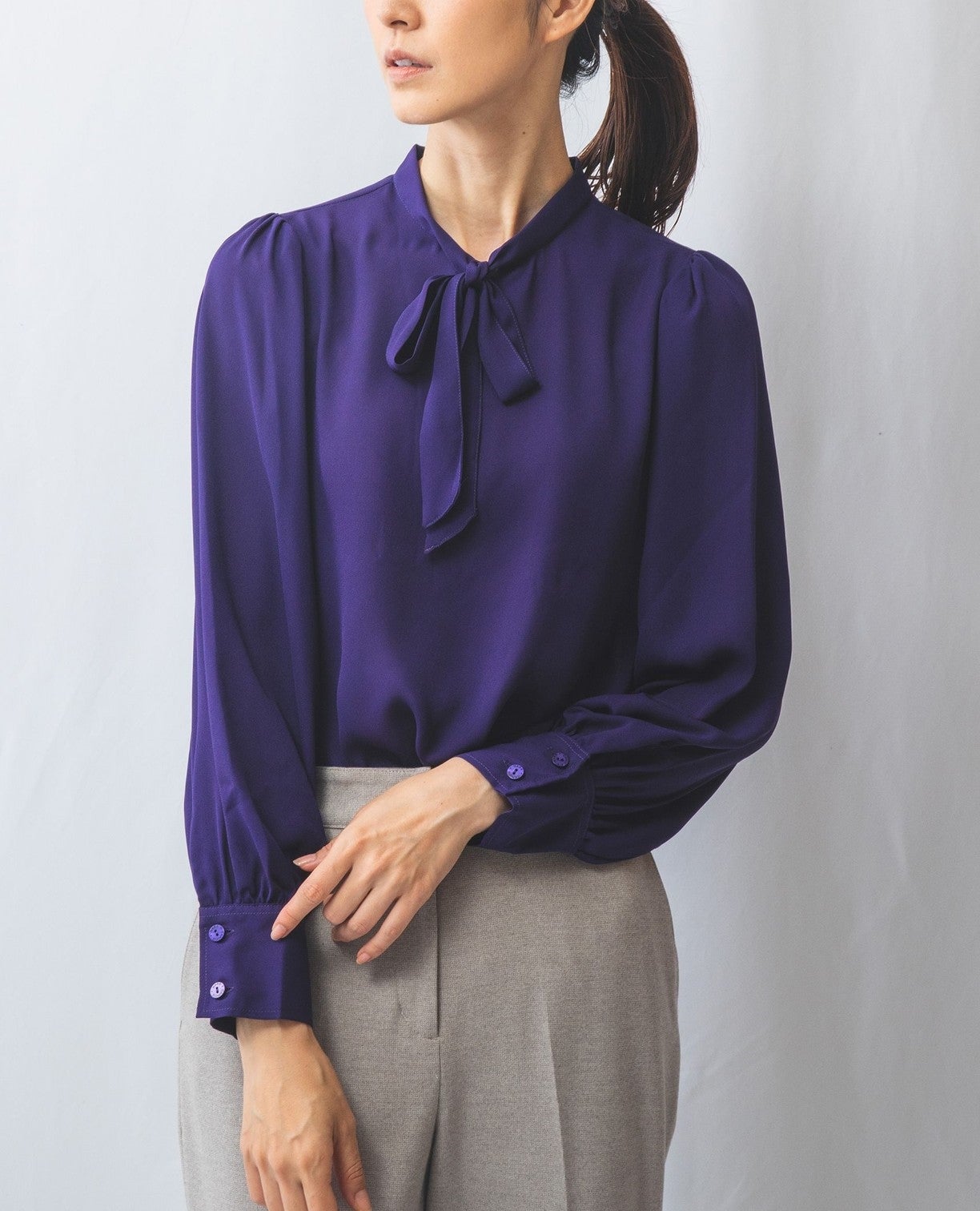 無地ジョーゼットナローボウタイブラウス
