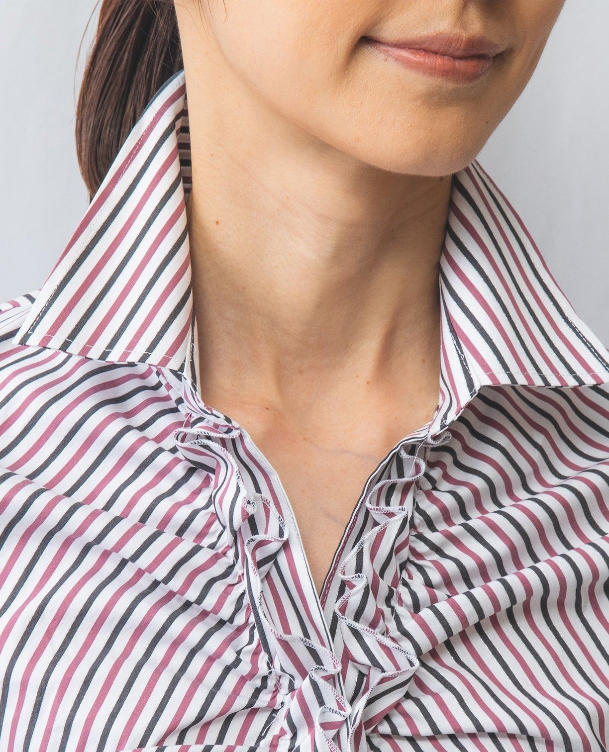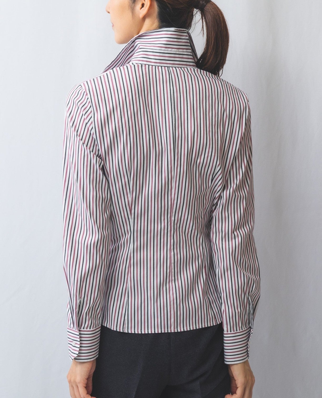 ストレッチシャイニーストライプフロントギャザーシャツ