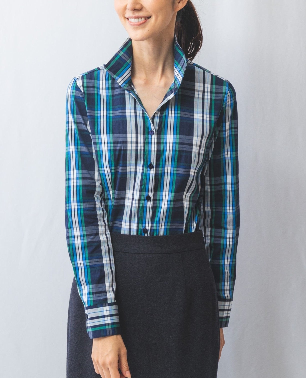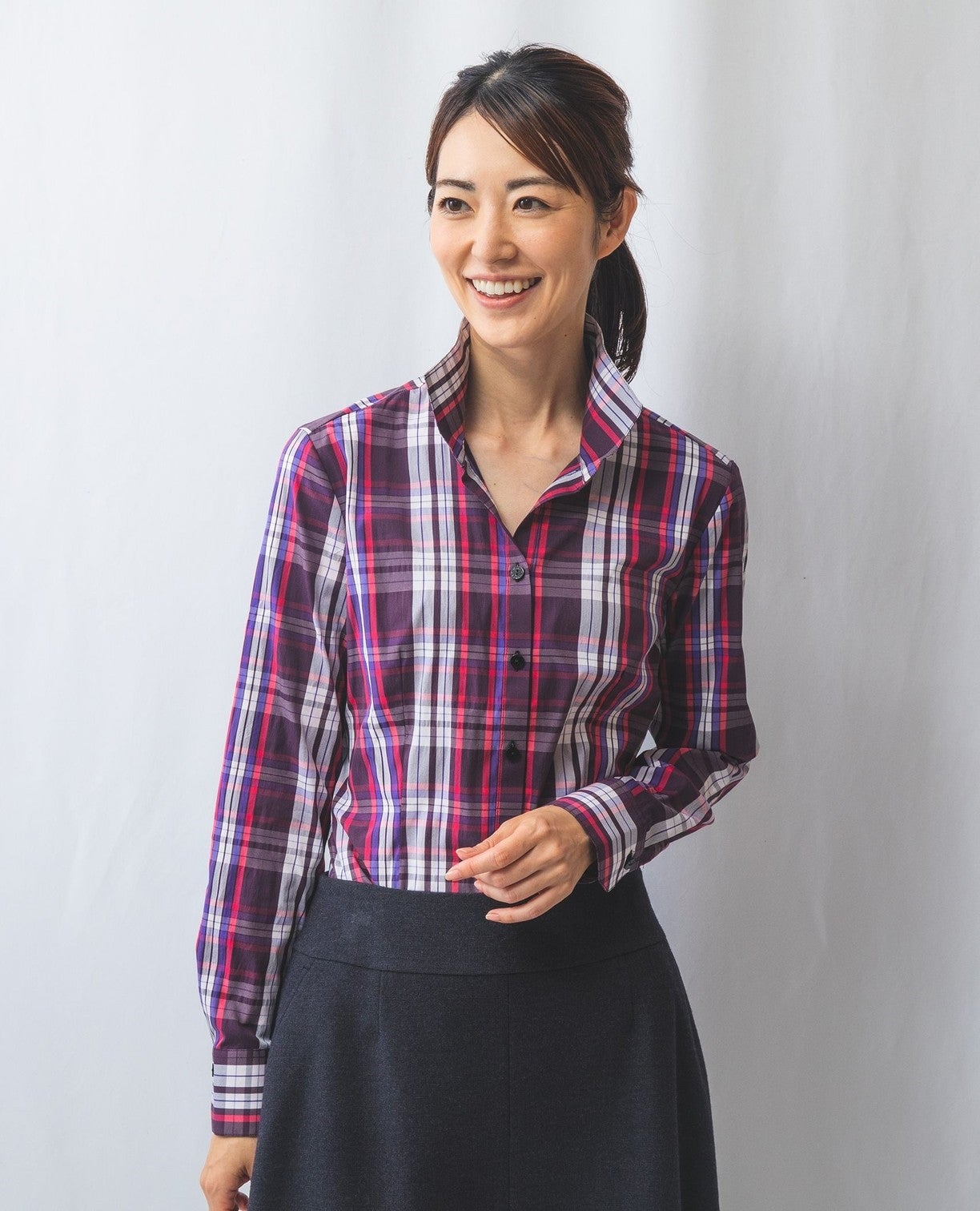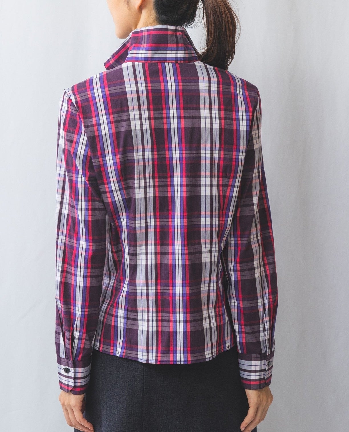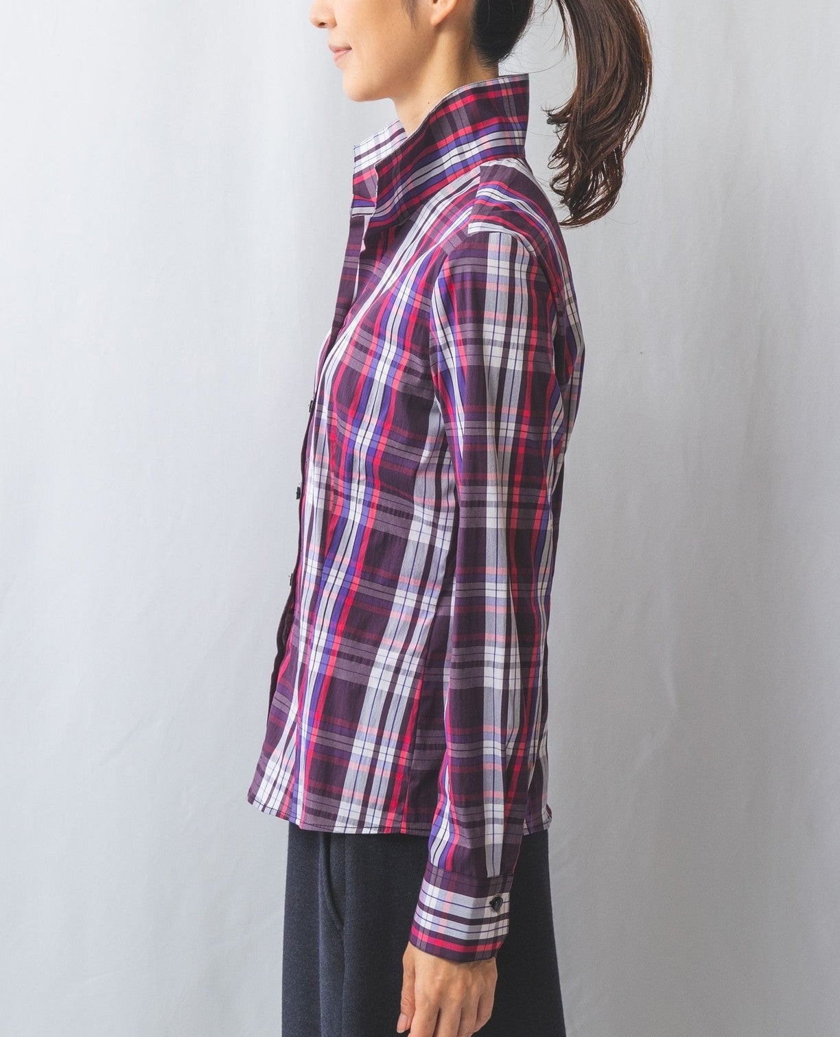 チェックスタンドカラーシャツ