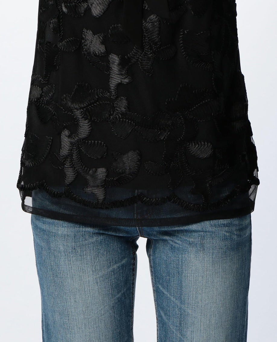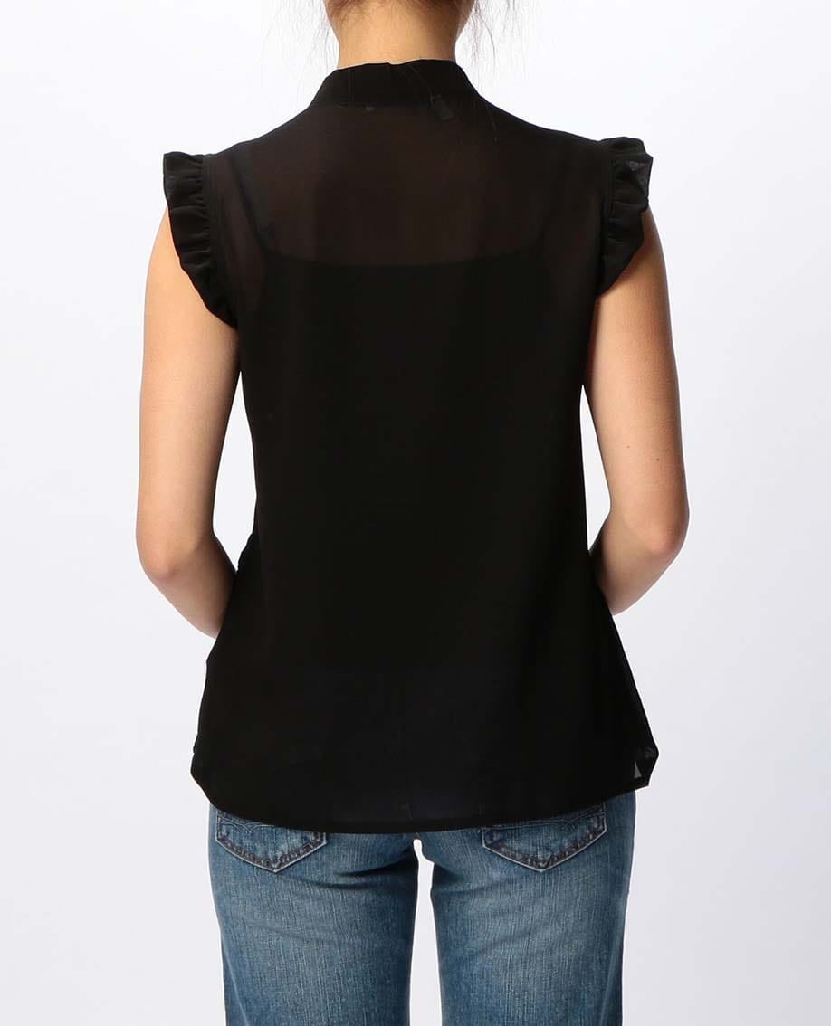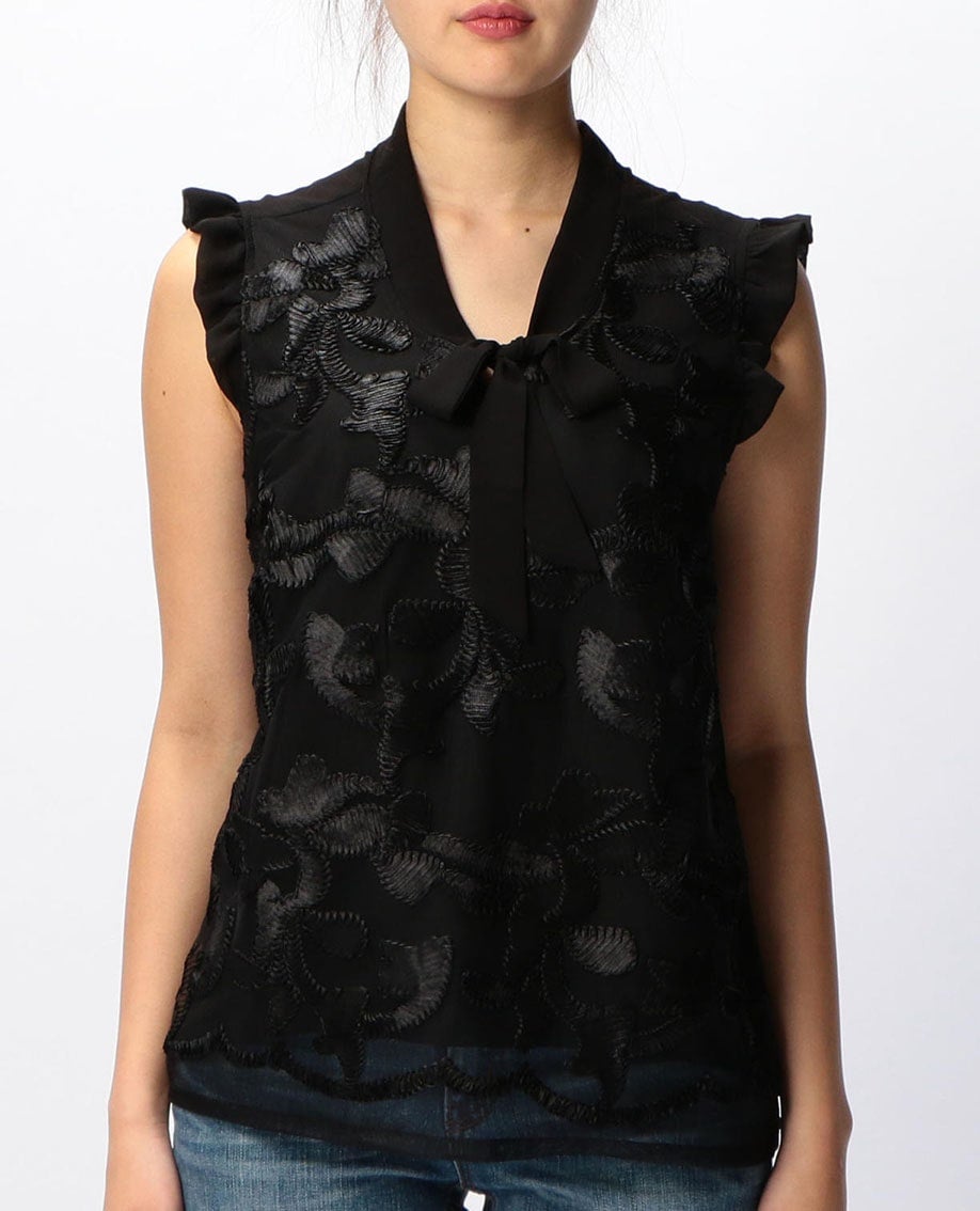 フロントレースリボンプルオーバーノースリーブブラウス
