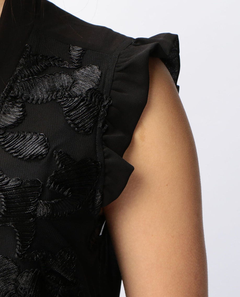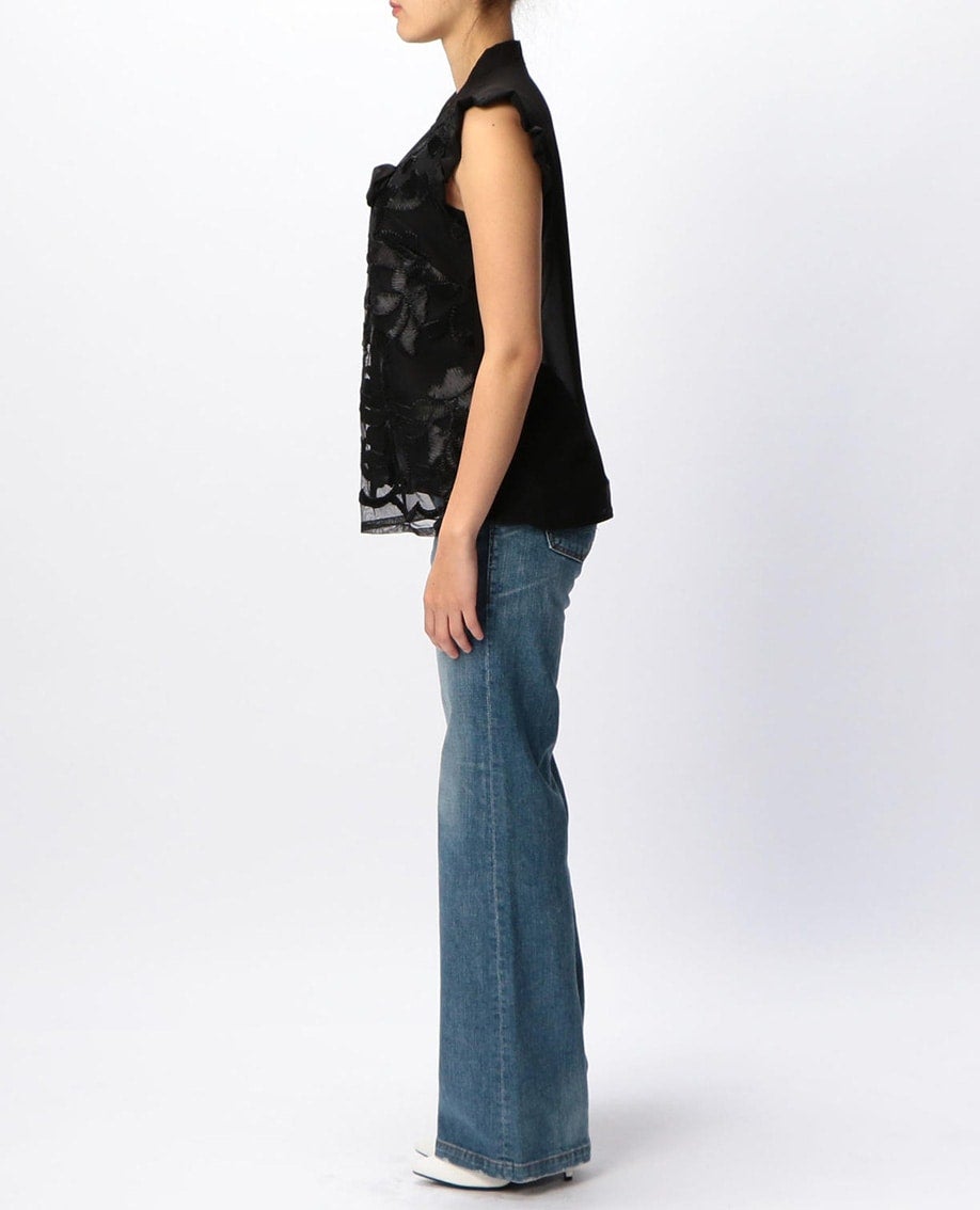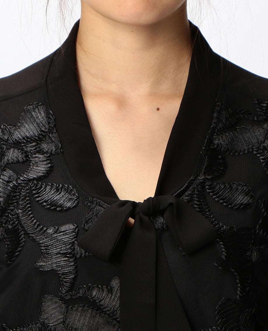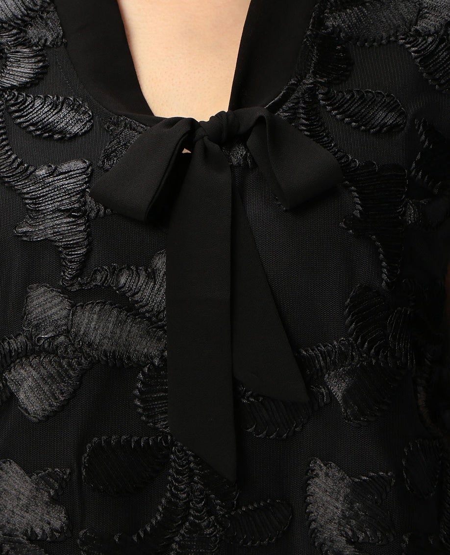 フロントレースリボンプルオーバーノースリーブブラウス