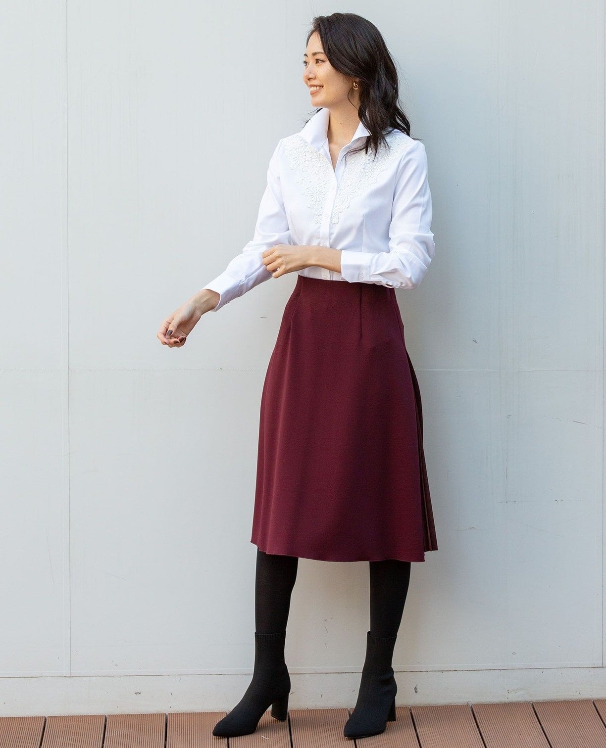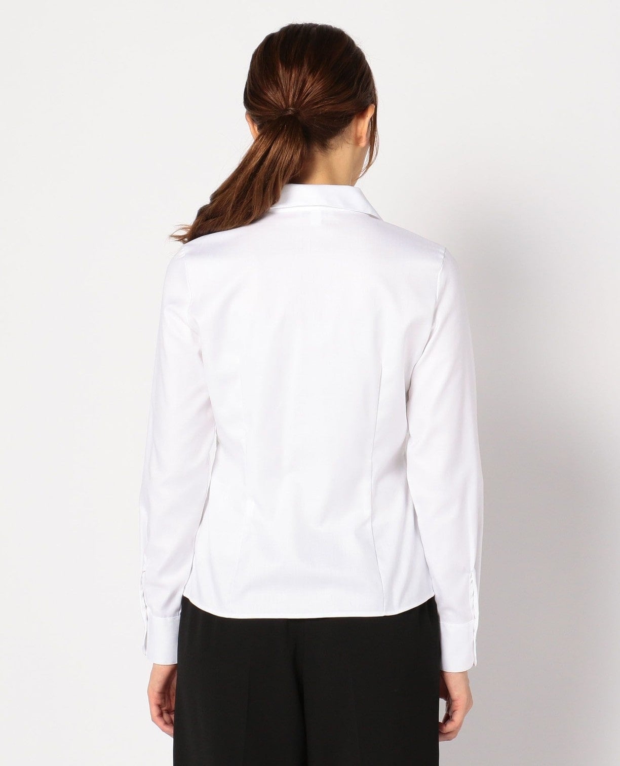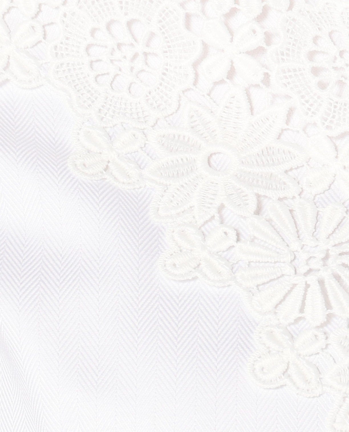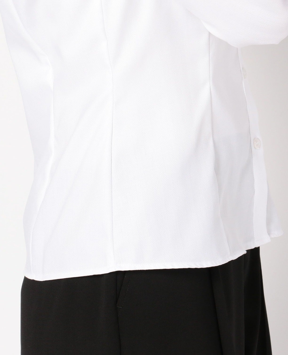 先染めへリーンボーン胸元レース使い長袖ブラウス