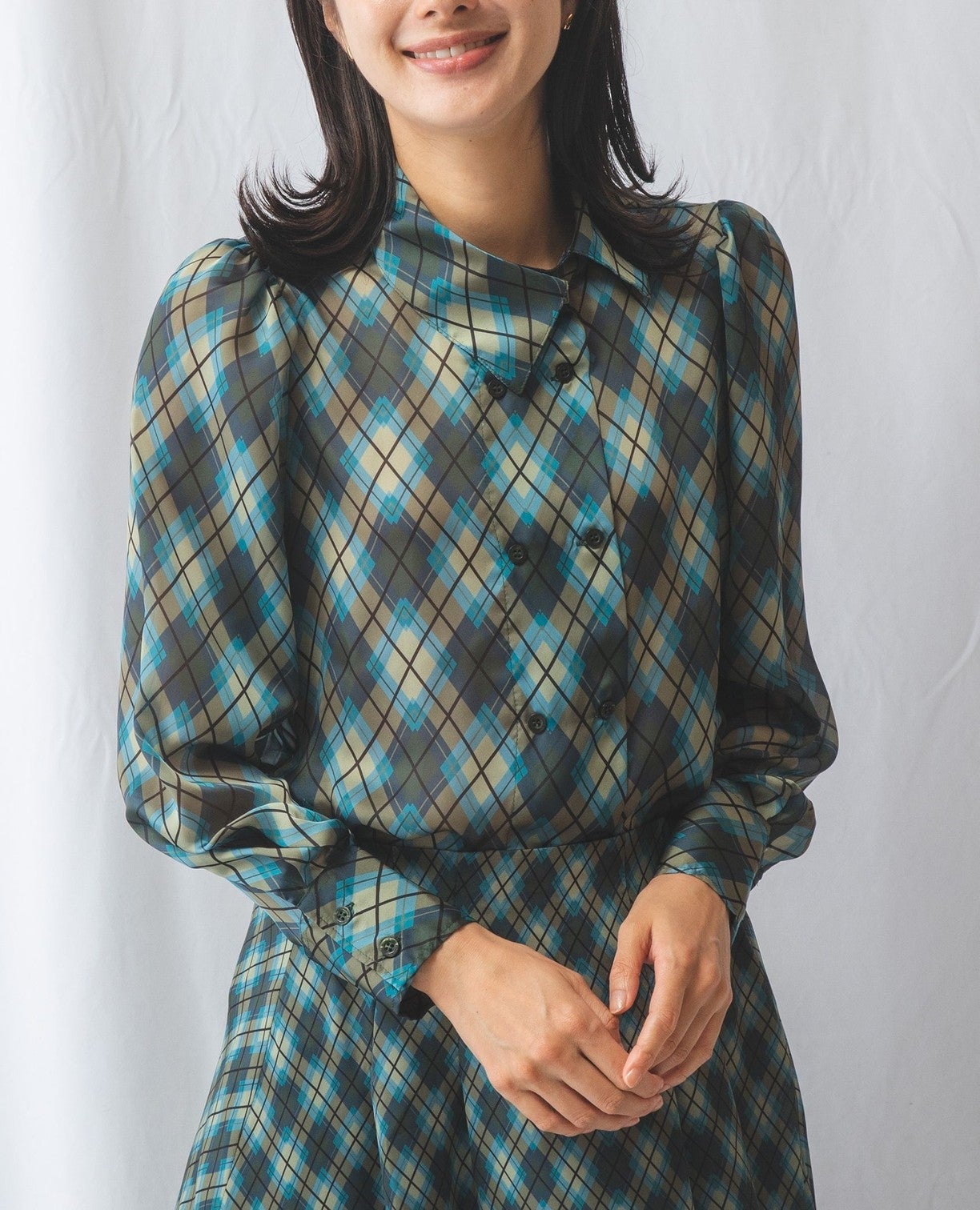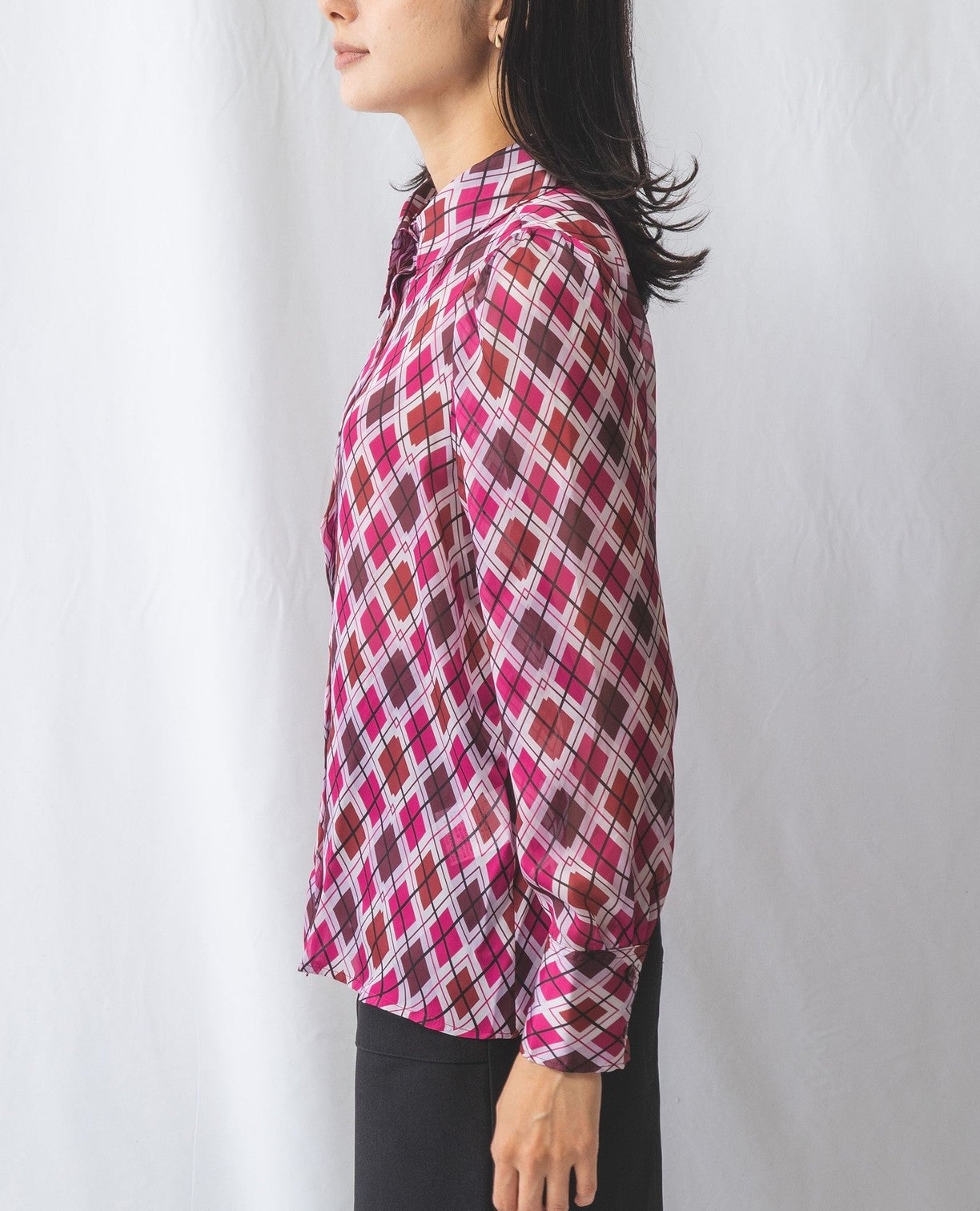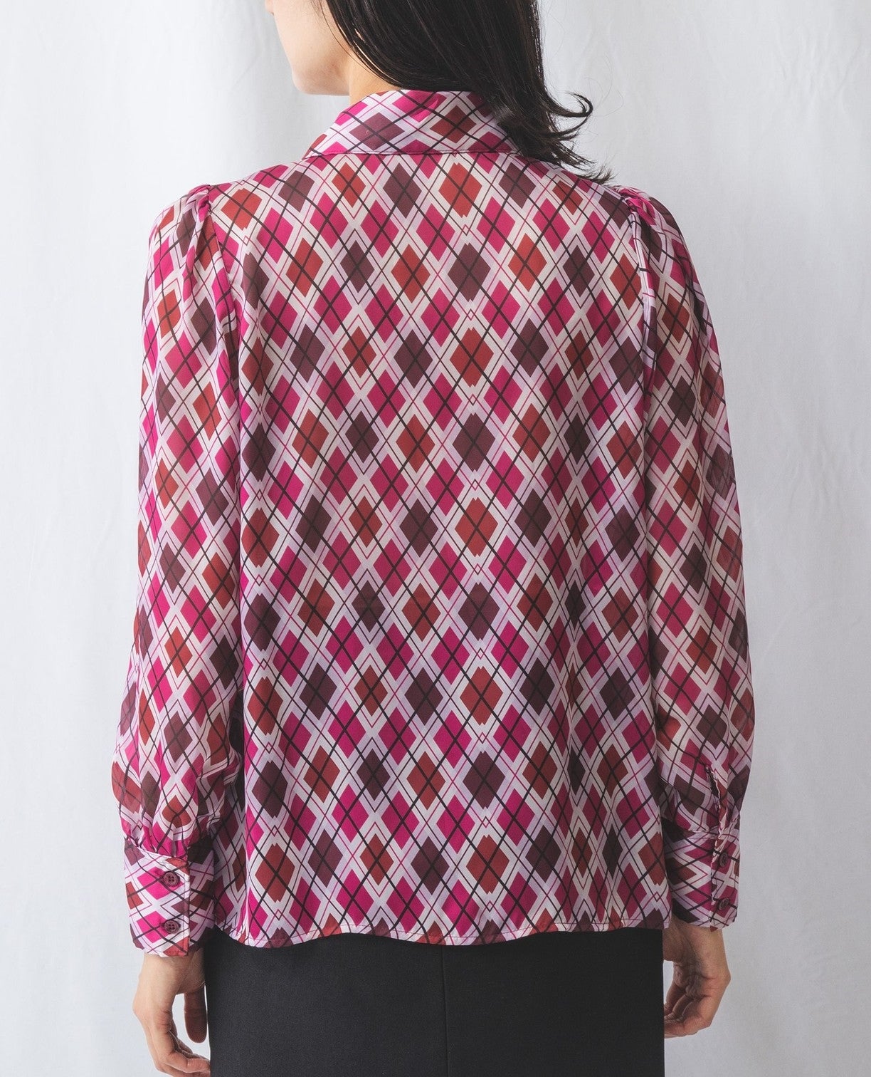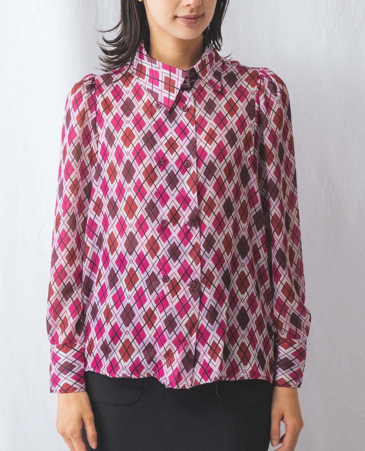 アーガイルシフォンダブルボタンブラウス