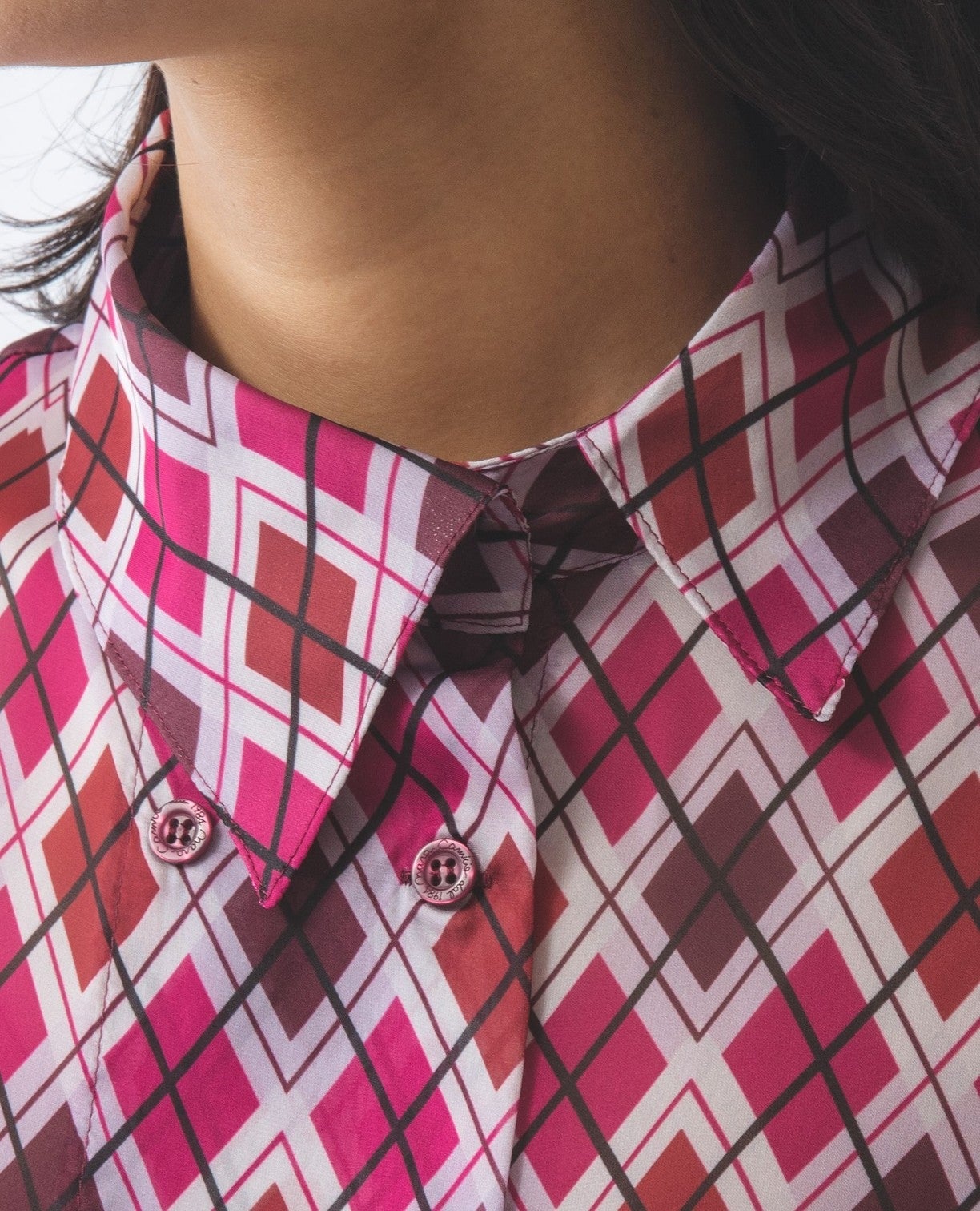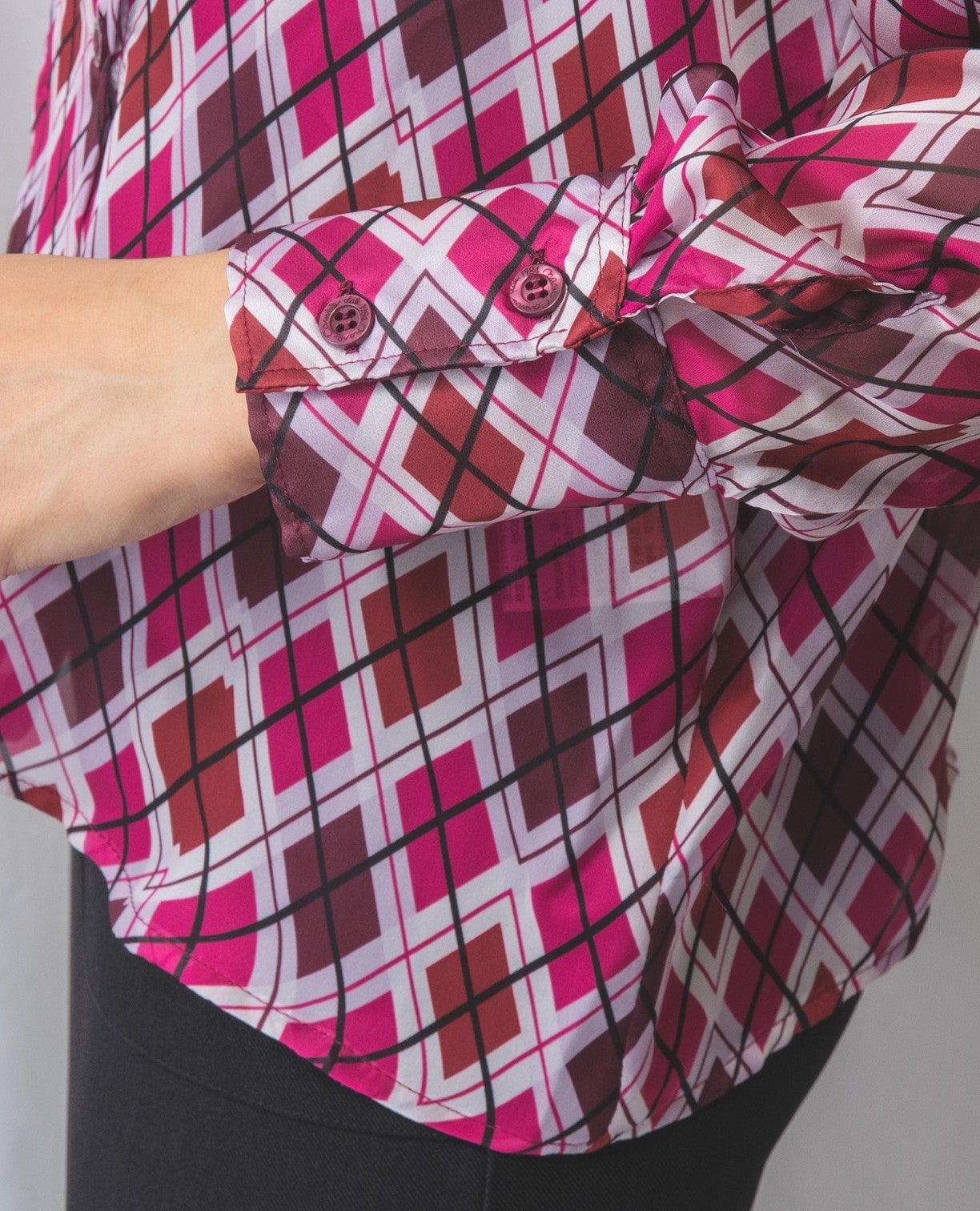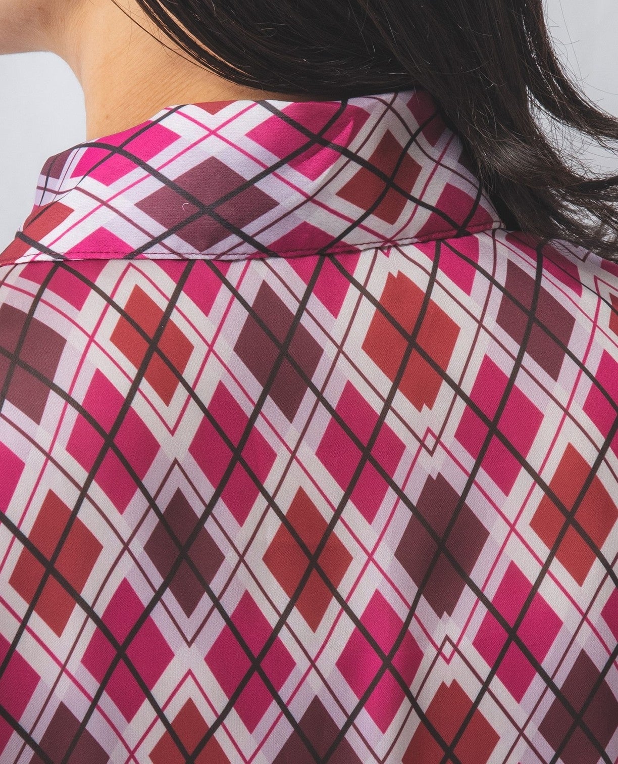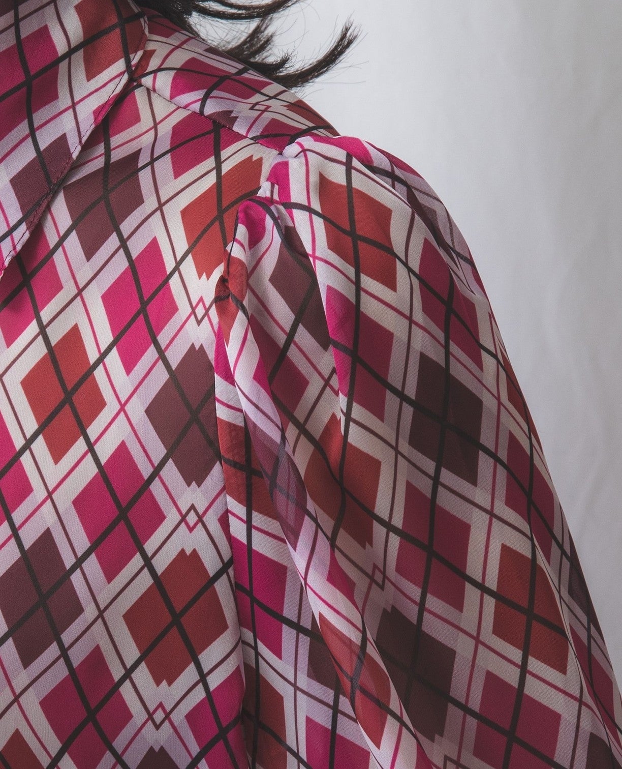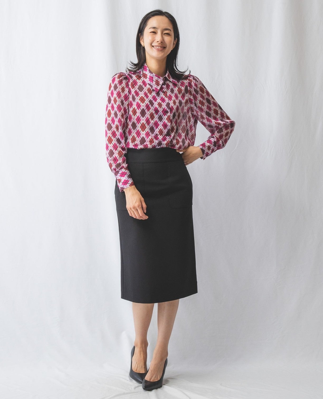 アーガイルシフォンダブルボタンブラウス